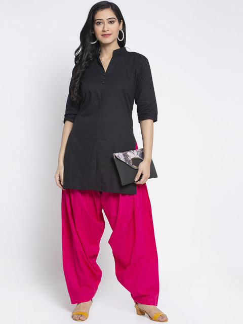 Pack of 2 solid cotton salwar in black & pink , has elasticated waist, drawstring closure