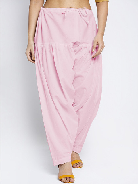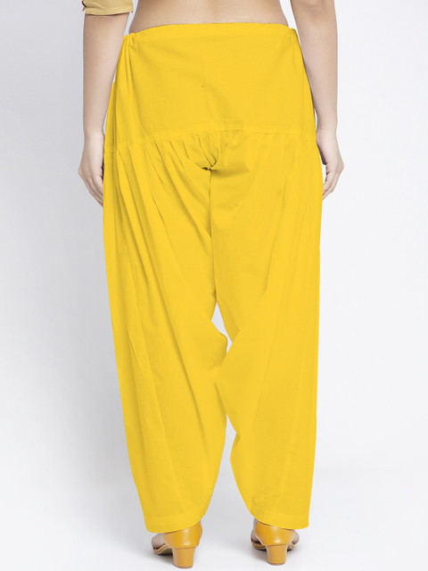 Pack of two solid mid-rise regular-fit salwar in yellow and pink with gathers and pleats, each has an elasticated waistband with drawstring closure