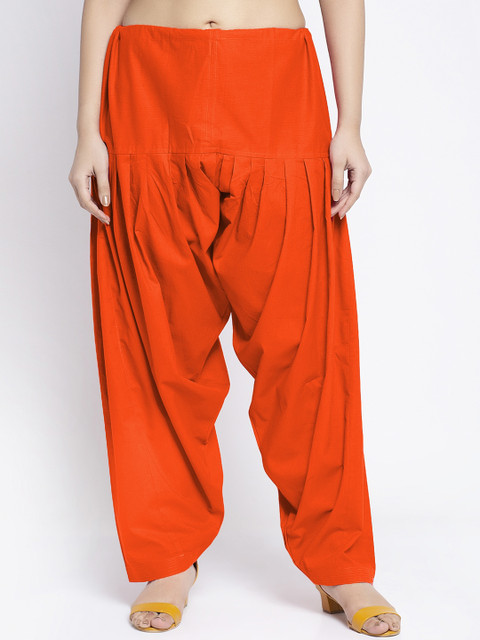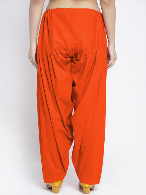 Pack of two solid loose-fit mid-rise salwars in orange and navy blue, each has gathered and pleated detail, has drawstring closure