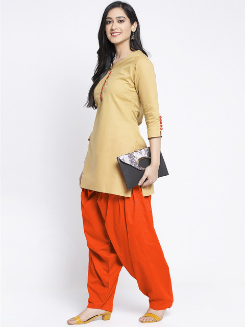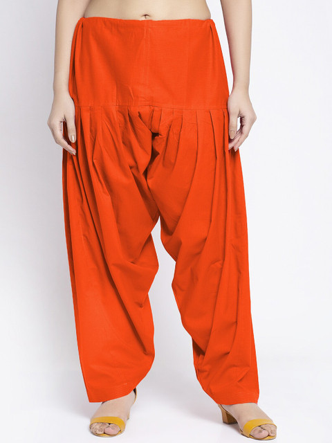 Orange solid loose-fit patiala with gathers and pleats, has an elasticated waistband with drawstring closure