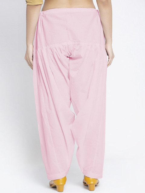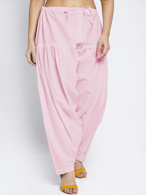 Pack of 2 solid mid-rise loose-ft salwar with gathers and pleats in pink and turquoise-blue, each has an drawstring closure