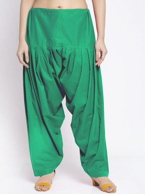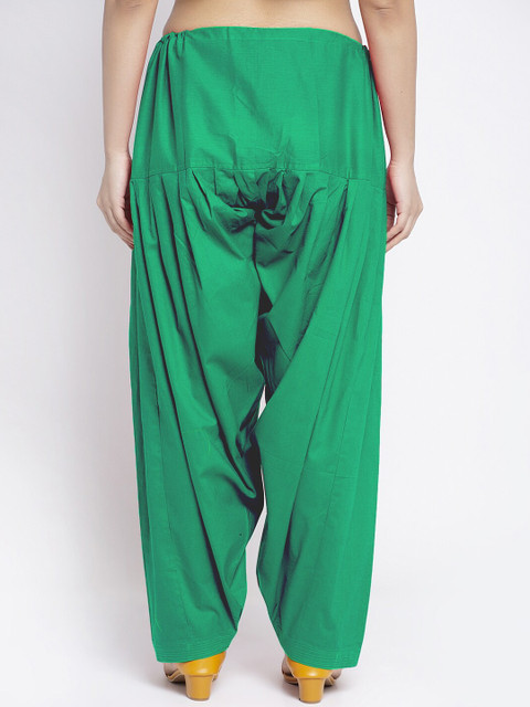 Green solid mid-rise regular-fit salwar, has a gathers and pleats and elasticated waistband with slip-on closure