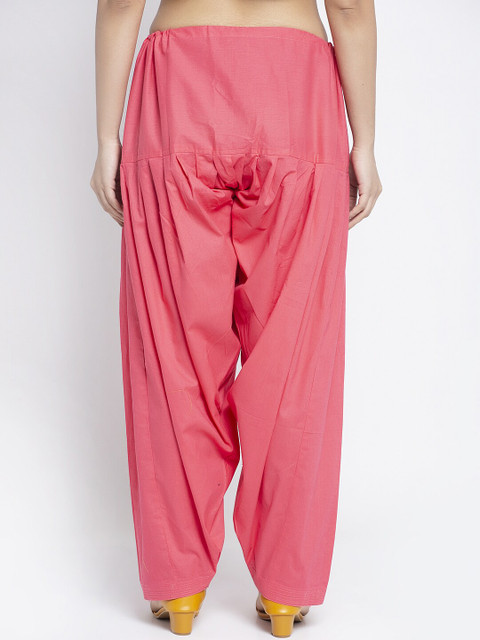 A pair of pink and brown solid loos-fit salwar with gathered detail, each has a drawstring closure