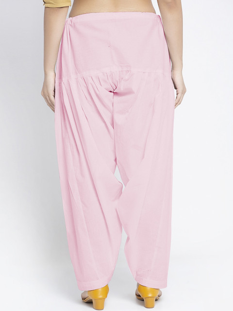 Pink solid mid-rise regular-fit salwar, has a gathers and pleats and elasticated waistband with a drawstring closure