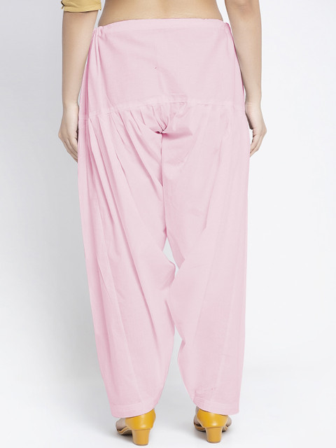 Pink solid mid-rise regular-fit salwar, has a gathers and pleats and elasticated waistband with a drawstring closure
