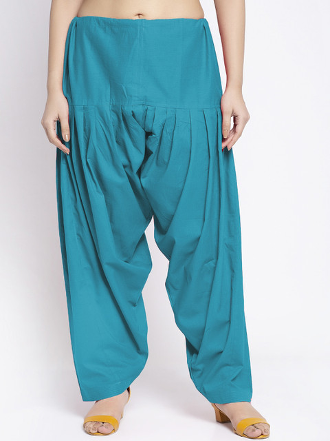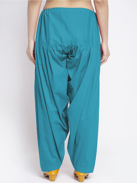 Turquoise-blue solid mid-rise regular-fit salwar, has a gathers and pleats and elasticated waistband with slip-on closure