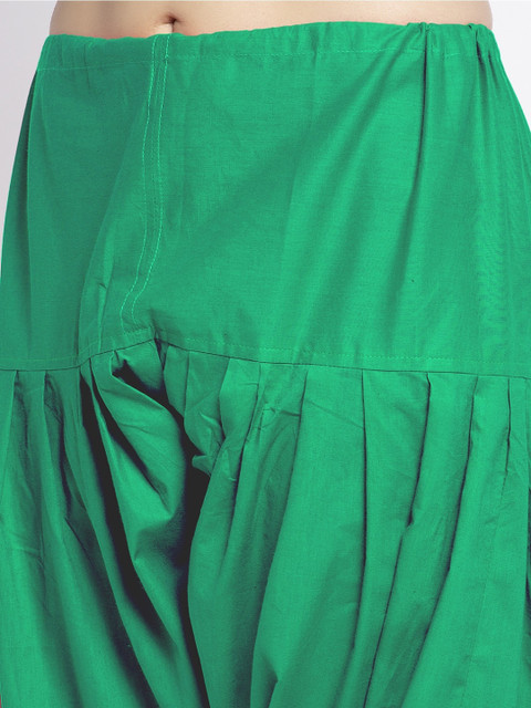 Green solid mid-rise regular-fit salwar with gathers and pleats, has an elasticated waistband with slip-on closure