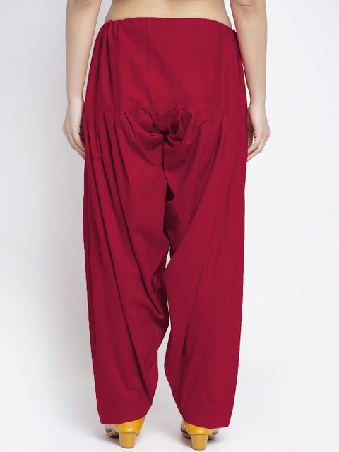 Maroon solid mid-rise regular-fit salwar with gathers and pleats, has an elasticated waistband with slip-on closure