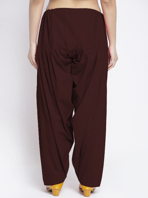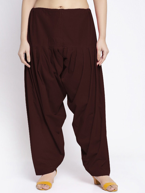 Pack of two solid mid-rise regular-fit salwar in orange and maroon with gathers and pleats, each has an elasticated waistband with slip-on closure