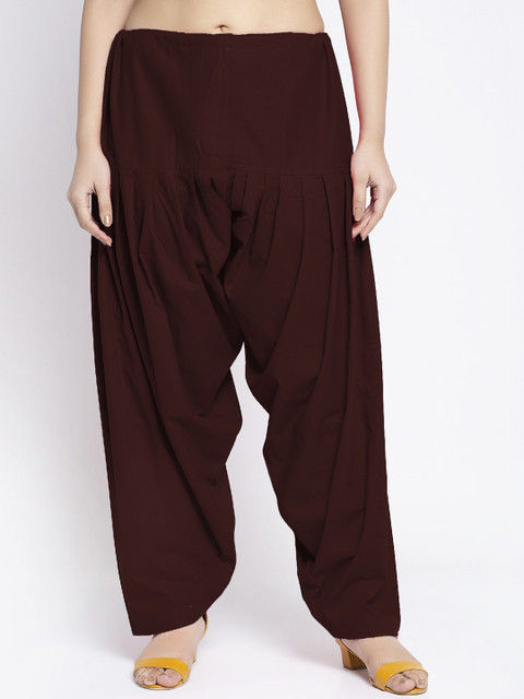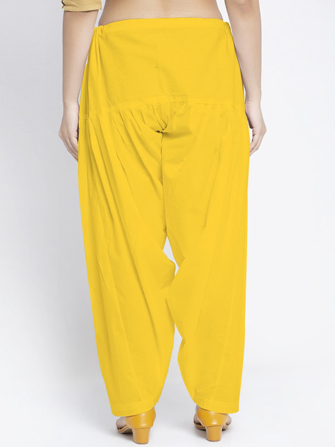 Pack of two solid mid-rise regular-fit salwar in yellow and brown with gathers and pleats, each has an elasticated waistband with drawstring closure