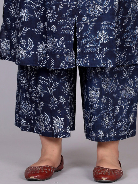 Blue and white printed palazzo, has an elasticated waistband with slip-on closure