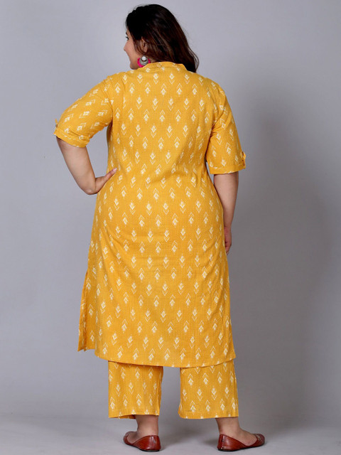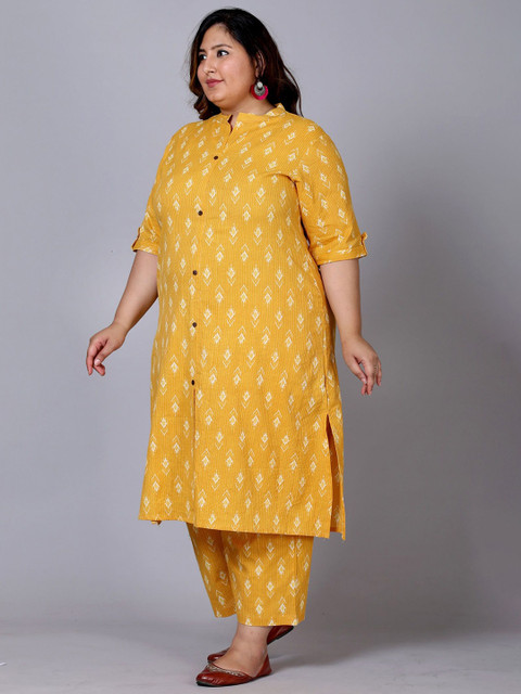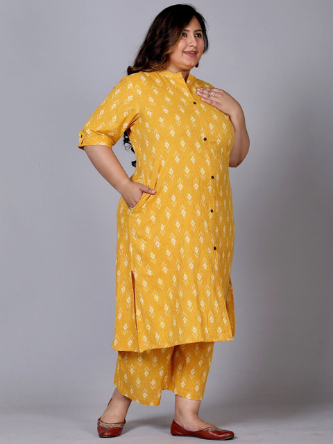 Gs Fashions Plus Size Printed Mandarin Collar Pure Cotton Tunic With Palazzo
