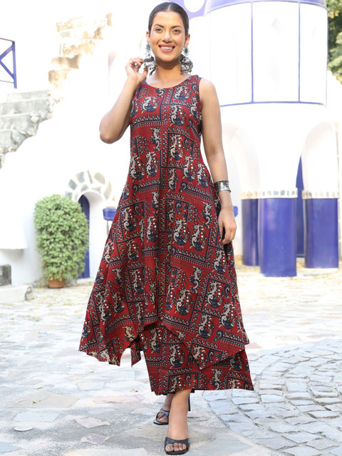 Maroon printed Kurta with Palazzos