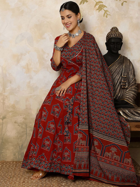 Maroon printed Kurta with Palazzos with dupatta