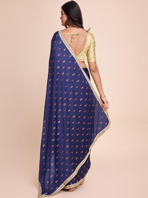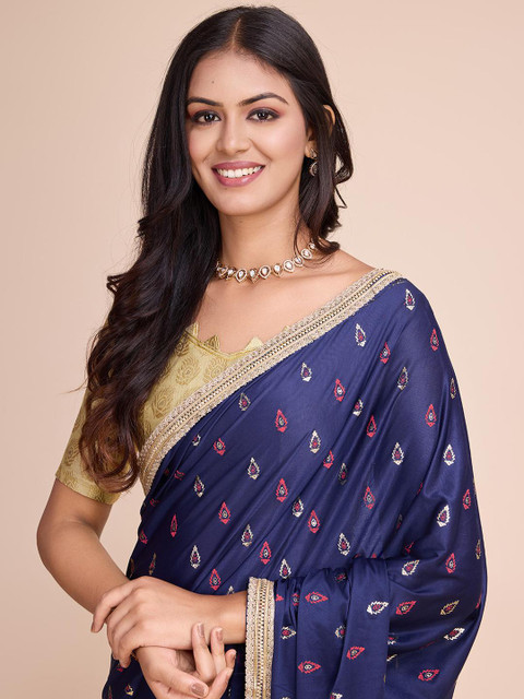 The blouse worn by the model might be for modelling purpose only. Check the image of the blouse piece to understand how the actual blouse piece looks like.