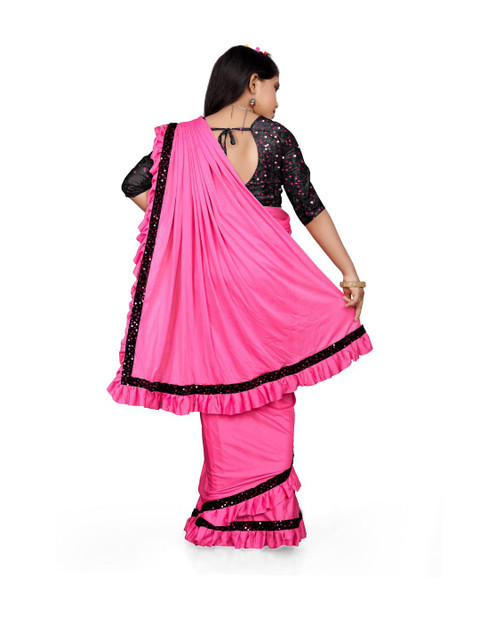 The blouse worn by the model might be for modelling purpose only. Check the image of the blouse piece to understand how the actual blouse piece looks like.