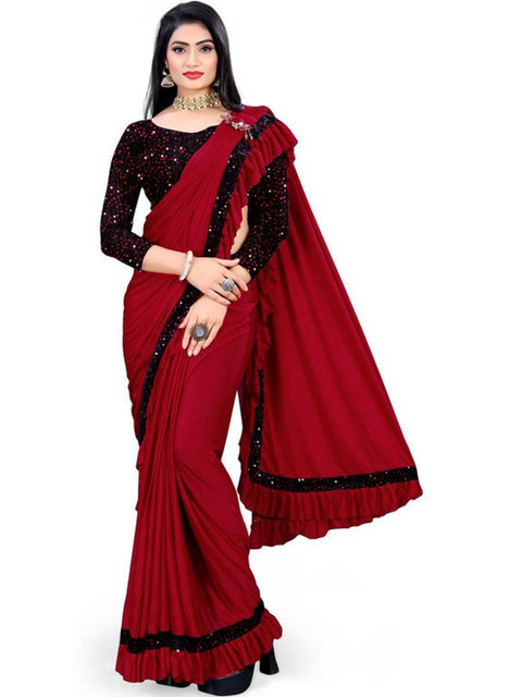 - Solid saree with embellished border border