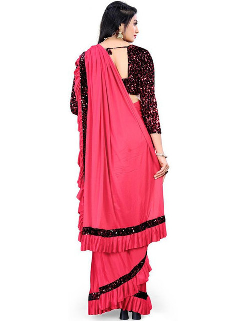 The blouse worn by the model might be for modelling purpose only. Check the image of the blouse piece to understand how the actual blouse piece looks like.