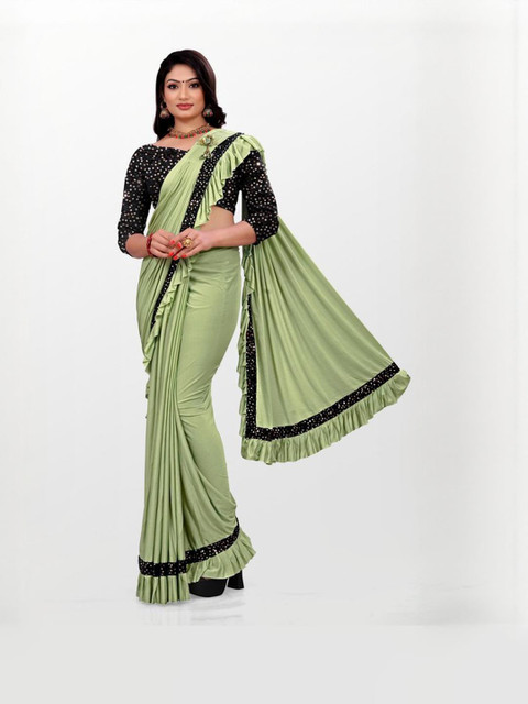 The blouse worn by the model might be for modelling purpose only. Check the image of the blouse piece to understand how the actual blouse piece looks like.