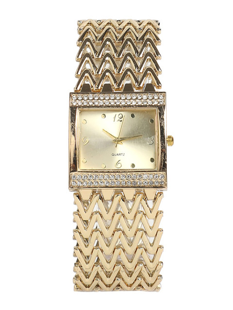 Strap Style:gold toned, stainless steel strap with a foldover