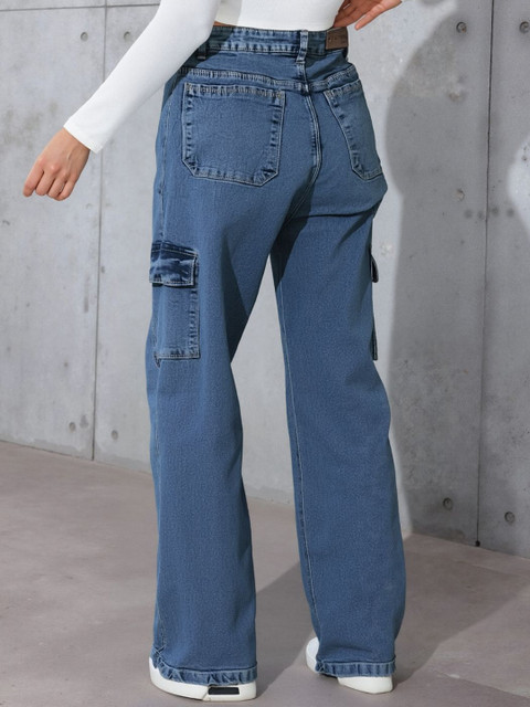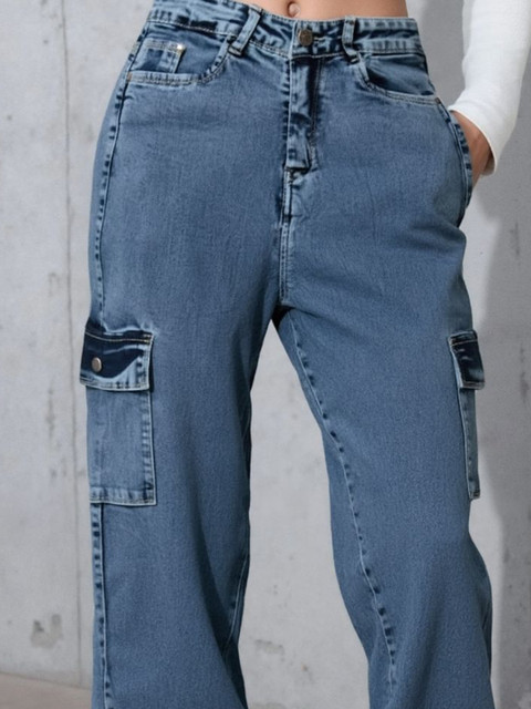 2 reviews for Hayler Women Jean Wide Leg Mid-Rise Light Fade Stretchable Cargo Jeans