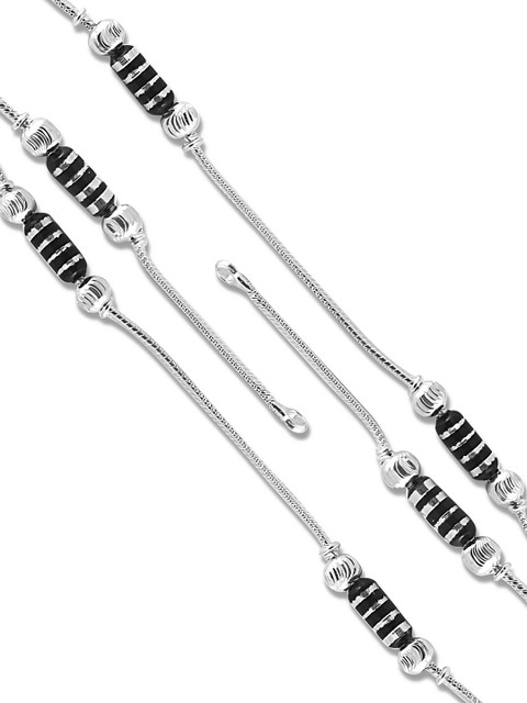 Silver-plated ghungroo beaded anklet s-hook closure