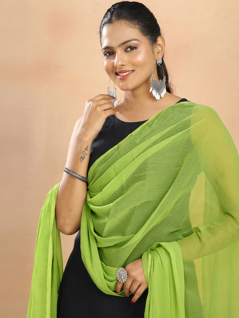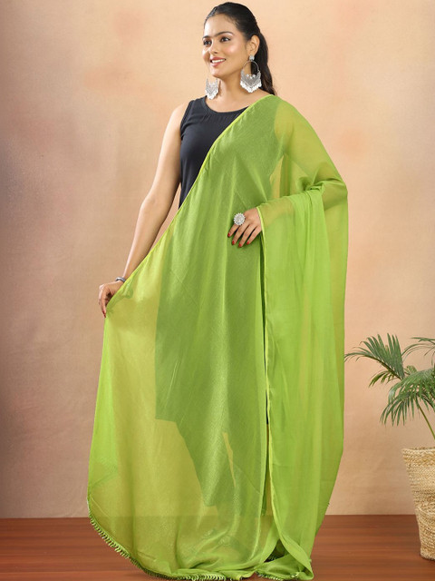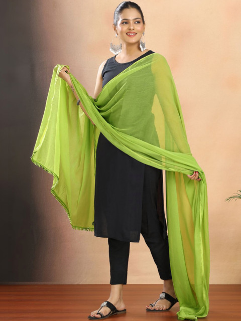 Lime green solid dupatta, solid border