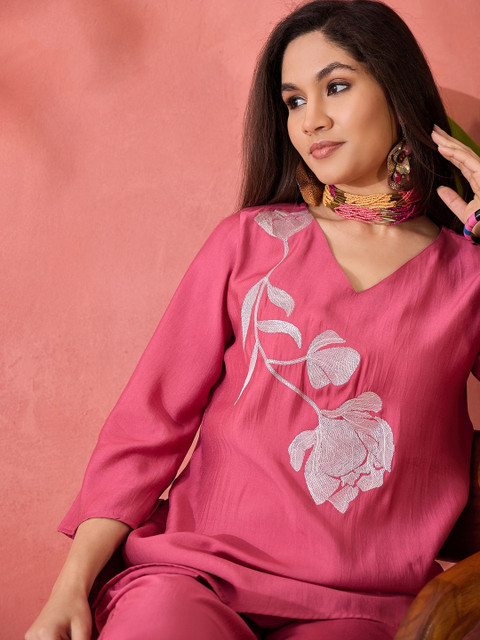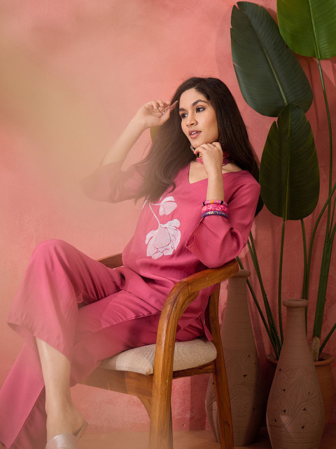 Pink Floral Embroidery Coord Set