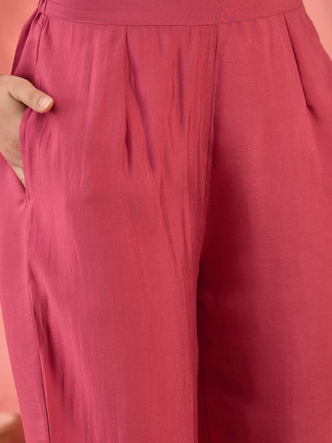 Pink Straight Fit Trouser, Has Front Belt And Back Elastic With Pockets In TrouserTop With Side Slit