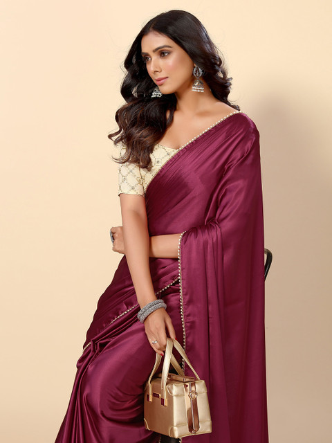 The saree feels instantly confident, like a statement piece that works for any skin tone; the fit is relaxed yet sharp, and the rich purple colour hasn’t faded after months of wear. The fabric is soft and breathable, perfect for daily use, while the silver‑lined border adds a subtle touch of elegance. Stitching stays neat with no loose threads, and the overall quality feels premium without a hefty price tag. It moves with you, giving a quiet lift whether you’re at work, grabbing coffee, or heading out at night, making it a versatile go‑to tee that you’ll reach for again and again. Keep rockin’ it—confidence guaranteed.