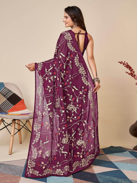 The blouse worn by the model might be for modelling purpose only. Check the image of the blouse piece to understand how the actual blouse piece looks like.