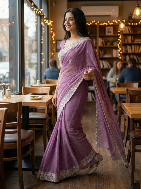 The blouse worn by the model might be for modelling purpose only. Check the image of the blouse piece to understand how the actual blouse piece looks like.