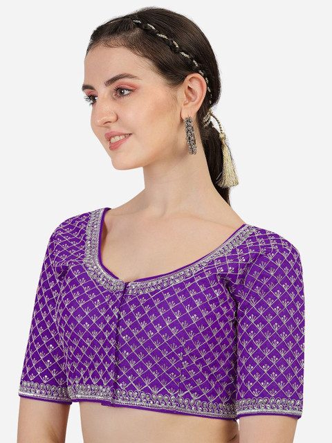 “Beautifully crafted blouse with elegant embroidery and a flattering round neck. Perfect blend of style and comfort, ideal for festive and traditional occasions.”