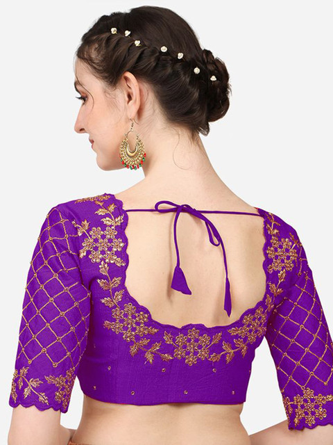 Embroidered blouse on front and back too. The golden colour can be paired with many sarees. Fabric is also good.