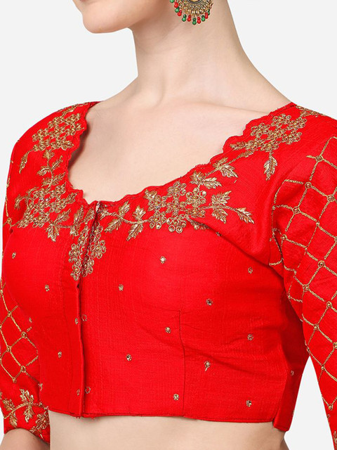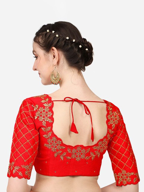 Embroidered blouse on front and back too. The golden colour can be paired with many sarees. Fabric is also good.