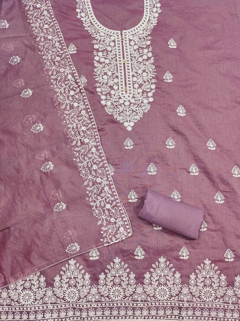 Lavender and white embroidered unstitched dress material
