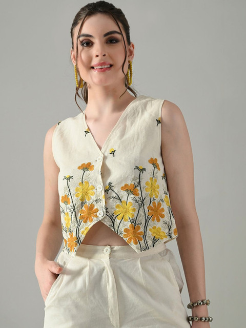 - Floral embroidered