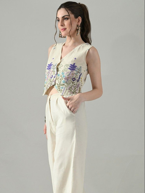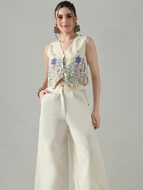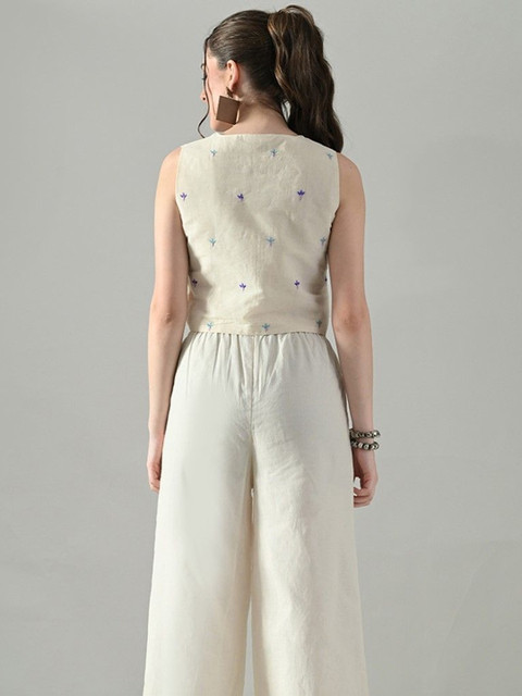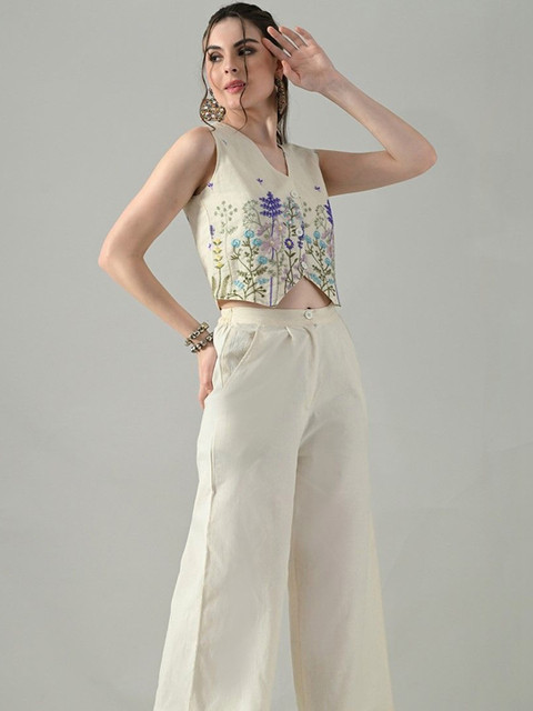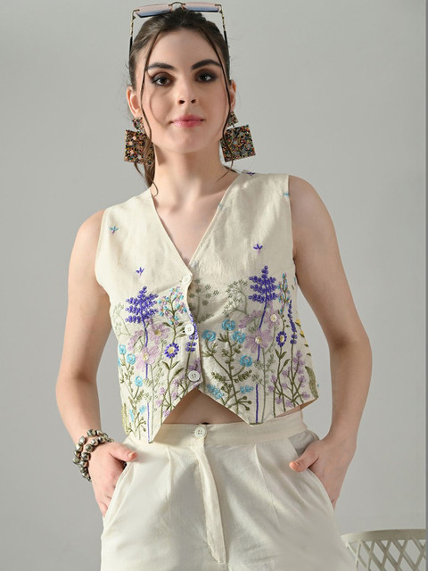 HERE&NOW Floral Embroidered Ethnic Cotton Crop Top