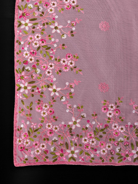 - Floral embroidered saree with embroidered border border