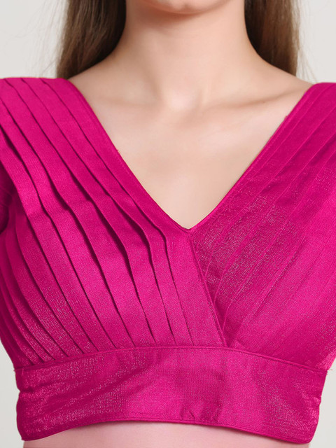 Pink solid padded blouse, has a V-neck, sleeveless and back hook and eye closure with tie-up details