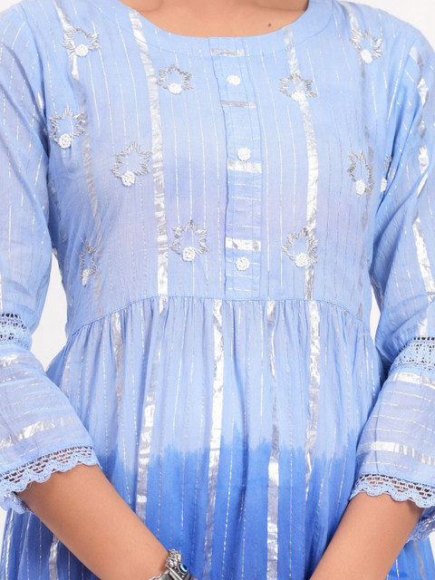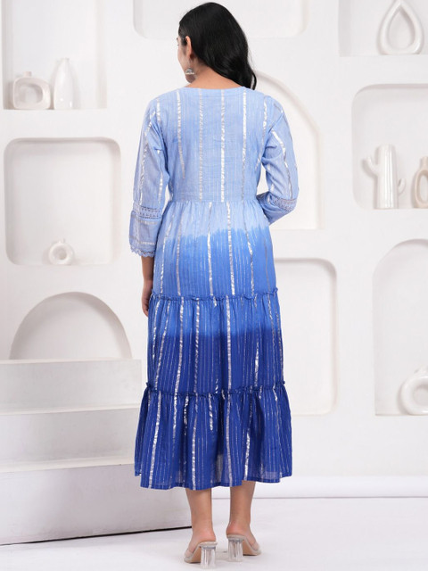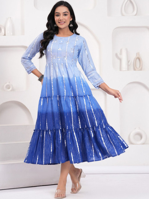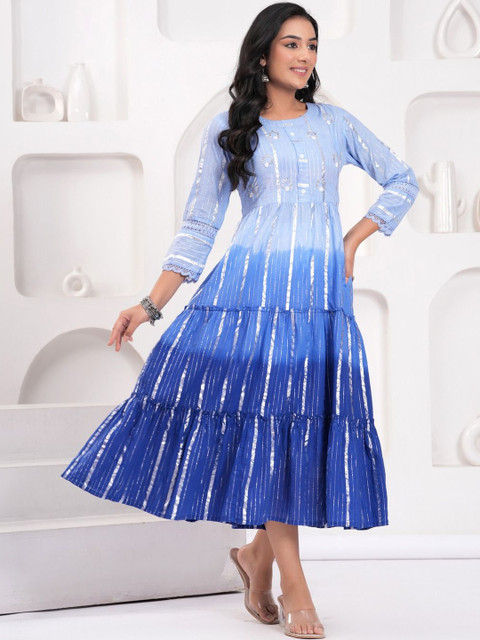 - Blue and blue tie and dye embellished fit & flare dress