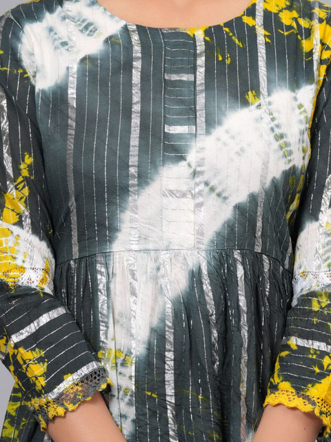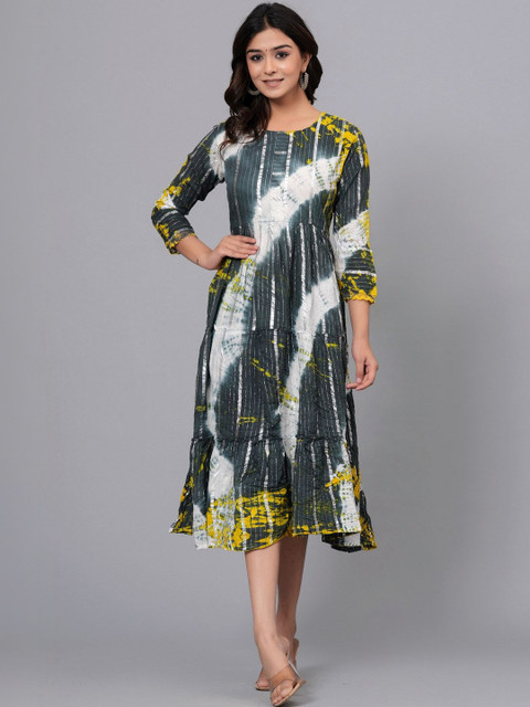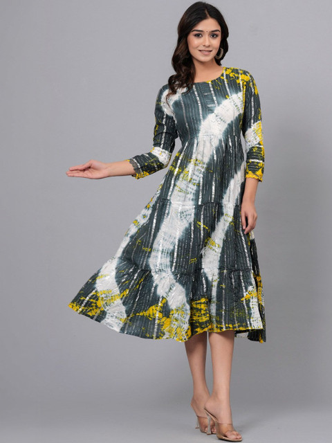 - Multicoloured and grey tie and dye print fit & flare dress
