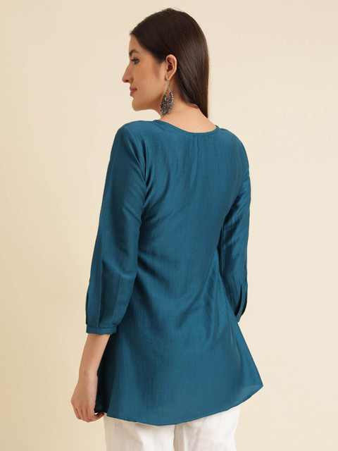 It’s a beautiful kurti. Perfect fitting epecially for females with broad waist . Material is superb. Must buy..