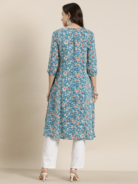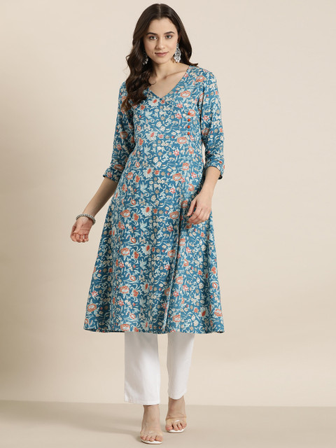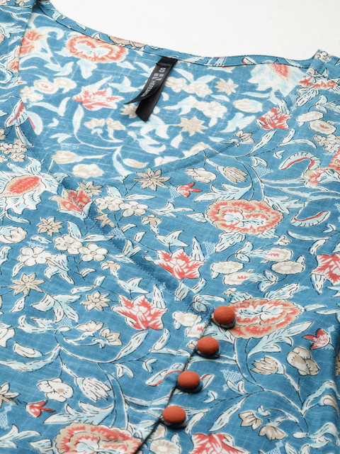3 reviews for HERE&NOW Women Floral Printed Angrakha A-Line Kurta