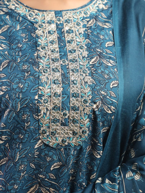 Be the first to review “HERE&NOW Women Floral Printed Regular Thread Work Pure Cotton Kurta with Palazzos & With Dupatta”