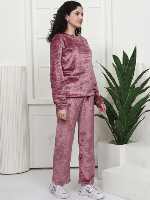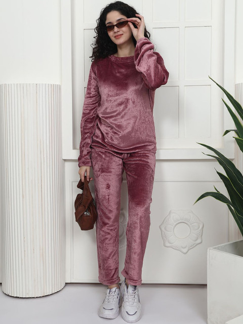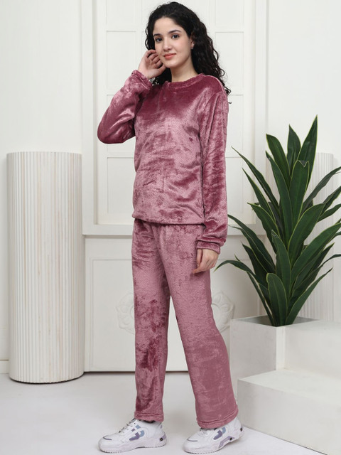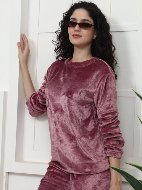 Mauve solid Sweatshirt , has a round neck, has long, regular sleeves