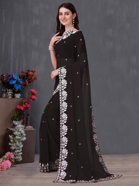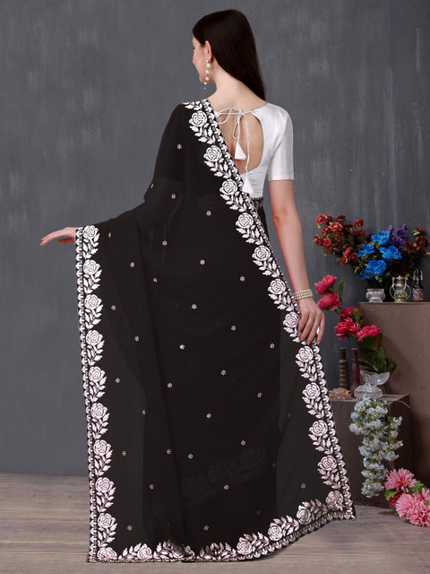 The blouse worn by the model might be for modelling purpose only. Check the image of the blouse piece to understand how the actual blouse piece looks like.