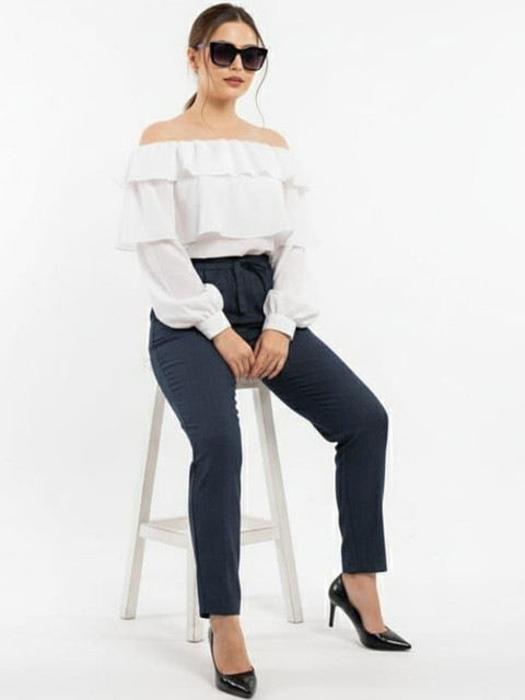 Go full Gen Z street-style chic by pairing this top with high-waisted, distressed denim skinny jeans (as styled), chunky sneakers, and a delicate layered necklace. For an evening vibe, swap the denim for a sleek faux-leather mini skirt and platform boots. Don’t forget those essential oversized sunglasses for an ‘I woke up like this’ cool-girl finish.