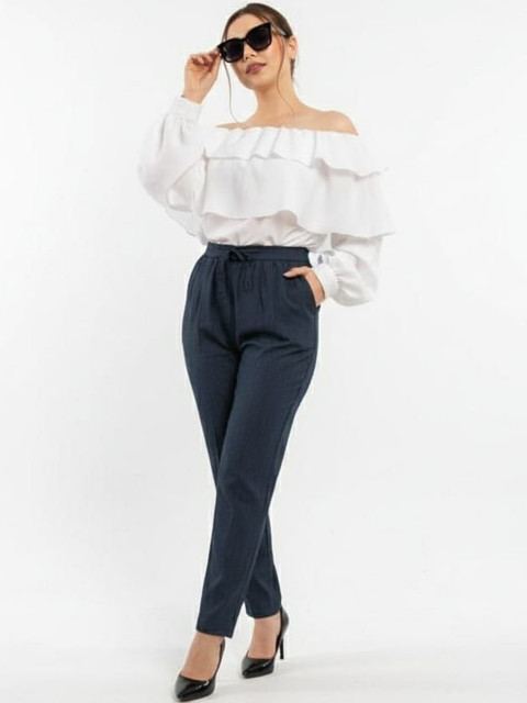 Crafted from a comfortable yet structured Polyester blend fabric, this top holds its shape beautifully while offering a soft drape. To keep the ruffles looking fresh, hand-wash in cold water with a mild detergent or use a gentle machine cycle in a laundry bag. Do not bleach. Hang or lay flat to dry in the shade. Iron on a low setting or, preferably, steam to maintain the ruffle’s volume.