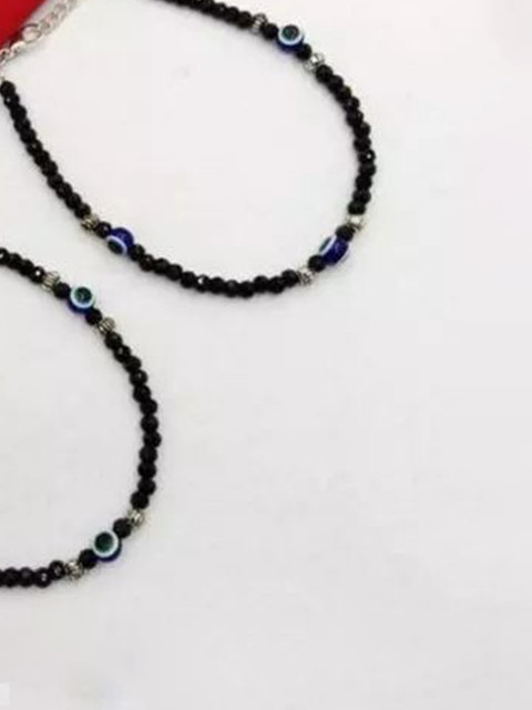 HIGH TRENDZ Silver-Plated Artificial Beaded Evil Eye Anklets